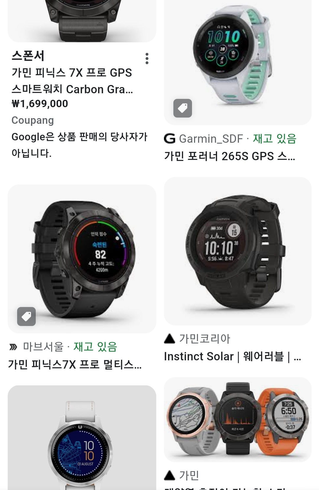 이와 달리 가민 제품 중에서도 비교적 저렴한 편에 속하는 포러너 255나 포러너 265의 가격은 50만원 대이다. 기본 사양을 갖춘 제품이 80만원대 초반으로 판매되고 있어 경쟁사인 애플이나 삼성전자가 출시한 스마트워치보다 약 40만원 정도 더 비싼 편이다.