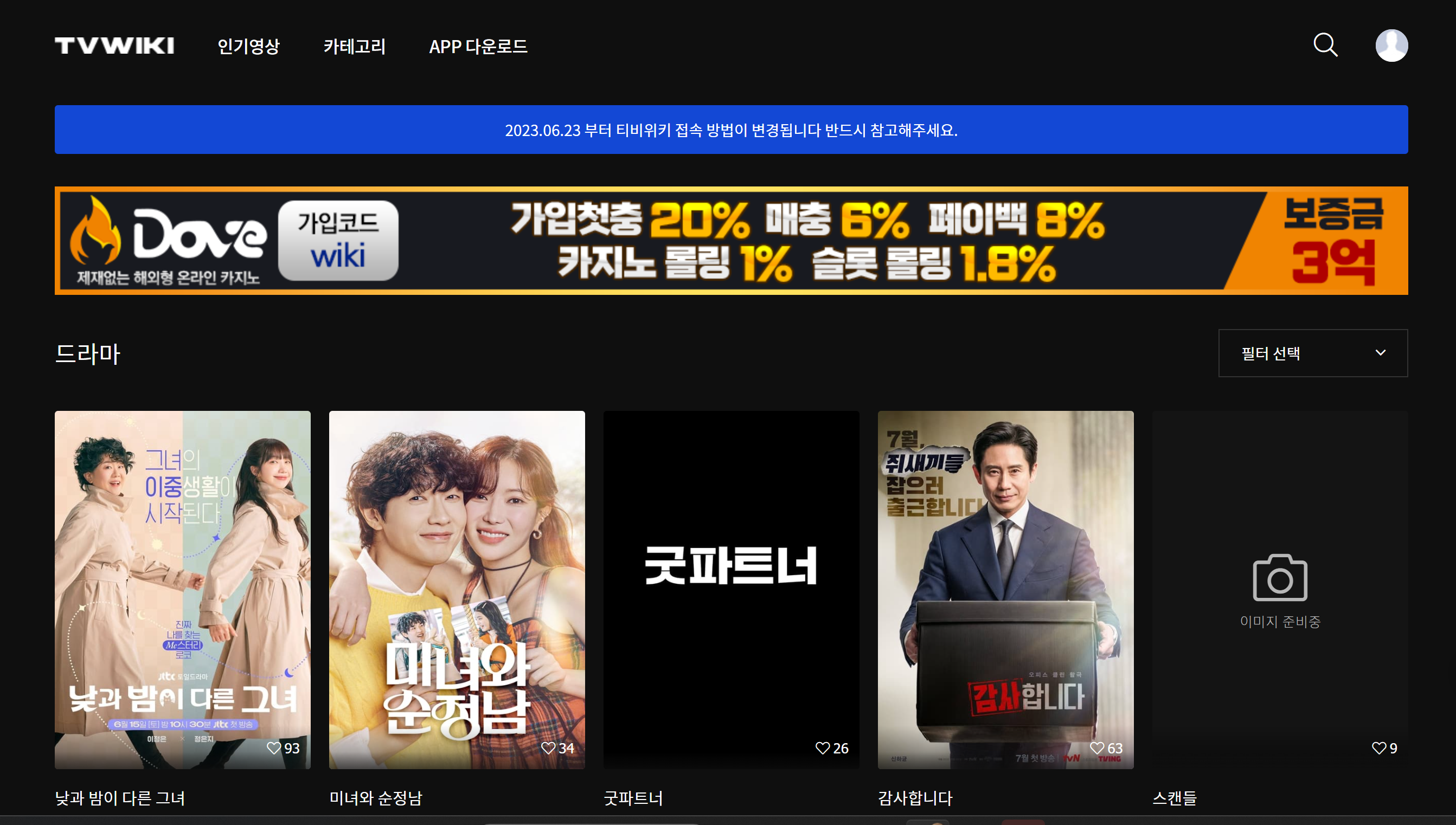 이곳은 누누티비가 폐쇄된 후에 누누티비의 자료를 계승한 것뿐만 아니라 넷플릭스, 디즈니+, 쿠팡플레이 등